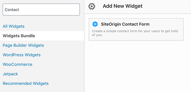 The SiteOrigin Widgets Bundle offers a simple and easy to use contact form widget. Once you’ve installed and activated the SiteOrigin Widgets Bundle plugin, go to PluginsSiteOrigin Widgets to enable the Contact Form widget. The Contact Form widget can be inserted into any theme widget area at AppearanceWidgets or any post/page using Page Builder by SiteOrigin. If you’re using the Block Editor, the Contact Form widget can be inserted via the SiteOrigin Layout or SiteOrigin Widget block.